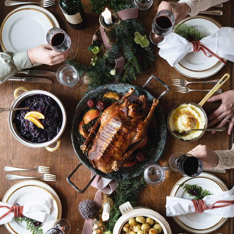 Rezeptideen: Gefüllter Martinsbraten, Gänsebraten mit Blaukraut und Erdäpfelknödeln, Gans mit Rotweinschalotten, Gebratene Gans mit Maroni-Zwetschgen-Füllung, Gänsebraten mit Äpfeln und Zwiebeln, Knusprige Gans mit Brioche-Füllung